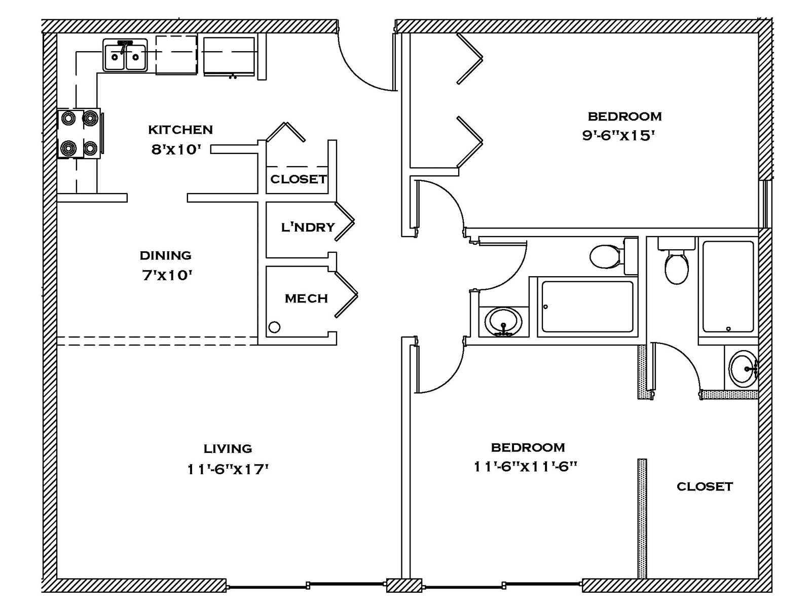 Our one bedroom floor plan also consists of two patio doors, one in the living room and one in the bedroom, giving residents a balcony with approximately 100 square feet, and plenty of natural lighting. Take advantage of the closet systems in our walk through closets.